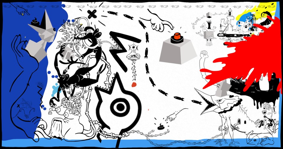 Die Haupthandlung und viele Details des Films basieren auf dem Prinzip des automatischen Zeichnens als Ausdruck unbewusster Inhalte. Es ist ein Prozess, bei dem ich einfach auf dem weißen Blatt zeichne, ohne zu wissen, wo ich am Ende landen werde. In diesem Fall habe ich mich, als ich mir das Ergebnis ansah, mit Themen wie Identität und Trauma auseinandergesetzt und mich dabei auf dem schmalen Grat zwischen Soziologie und Fantasie bewegt. So entstand eine Geschichte über Dissoziation und Integration, die durch Absurdität und symbolische Sprache meine persönlichen Ängste angesichts der zunehmenden Spannungen in der globalisierten Welt zum Ausdruck bringt.