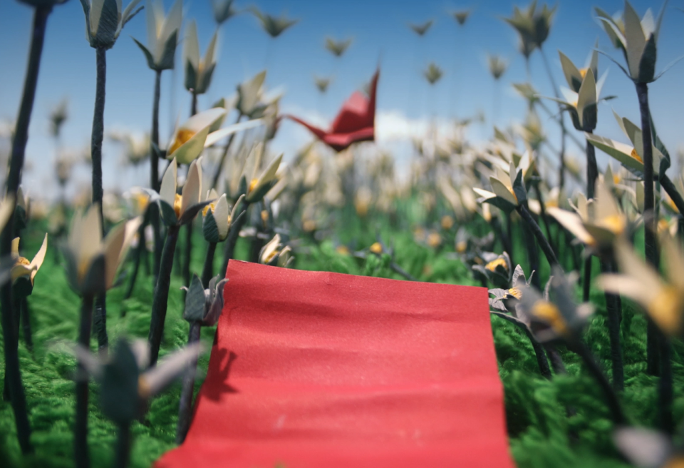 Tsuru tells the story of a sleeping piece of paper that, after being awakened by the flapping wings of a Tsuru (Japanese bird origami), begins a challenging journey in search of transformation.